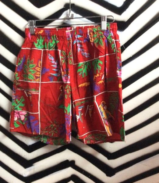Cotton swim trunk/shorts, tropical parrot print, red, size S