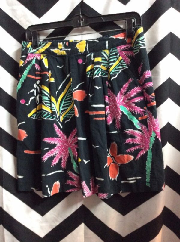 COTTON SHORTS W/HAWAIIAN PALM TREE PRINT IN NEON COLORS