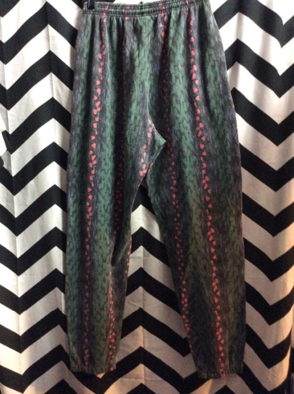 Pants, elastic waist, cotton, Fresh Prince, horizontal design ethnic pattern, green/pink/black, size L