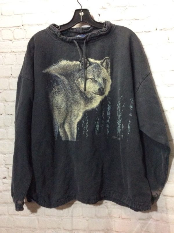 COTTON PULLOVER SWEATSHIRT W/ GRAY WOLF GRAPHIC