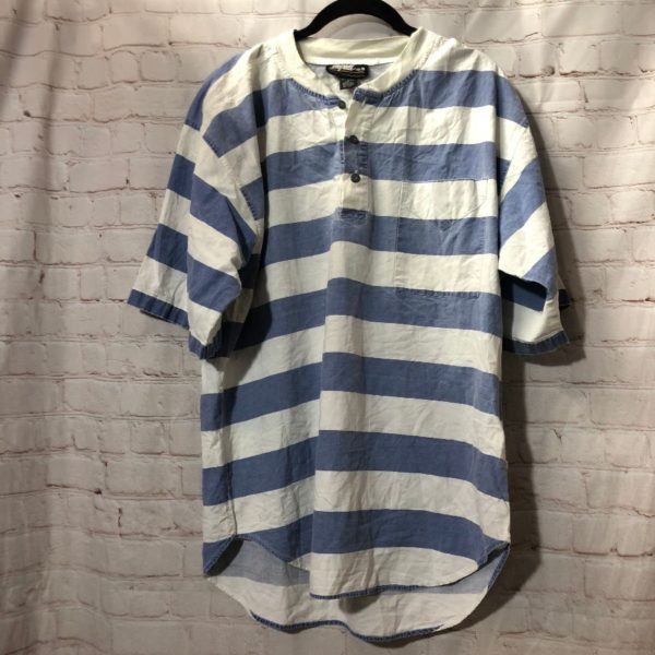 Impact shirt, cotton, short sleeves, button-up neck, thick horizontal striped design, blue/white, size M