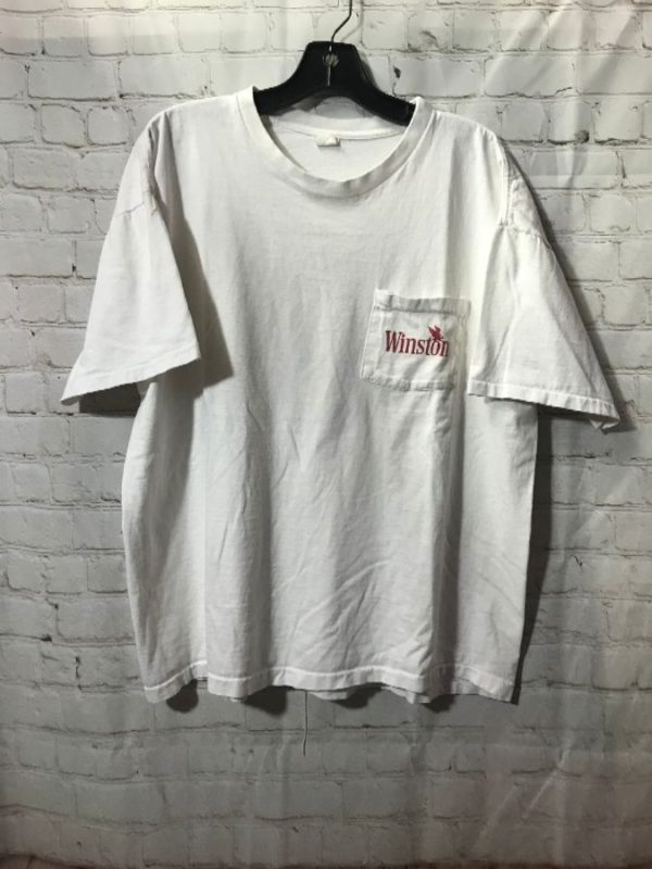 T-shirt, pocket tee, Winston, screen printed front pocket logo & The Spirit Of Freedom full back design, white/red/brown/yellow, size XL as is