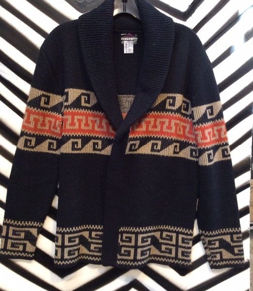 Dimension sweater/jacket – Cowichican, wave design, black/rust