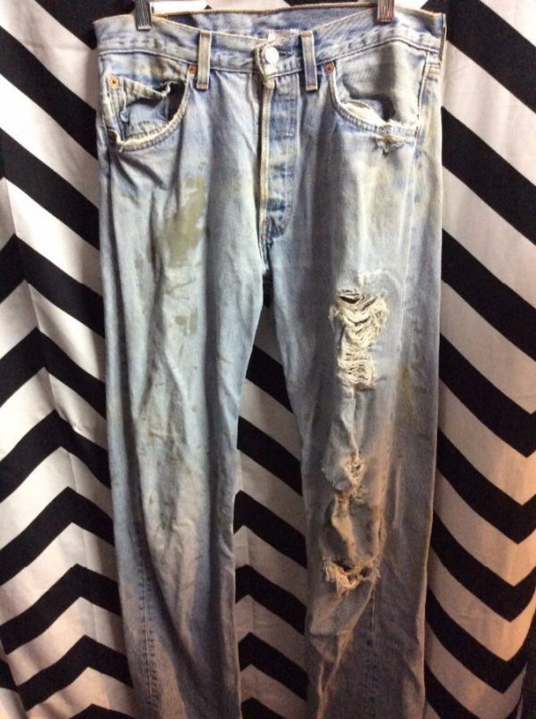 CRAZY DISTRESSED LEVIS 501 RIPS STAINS HOLES