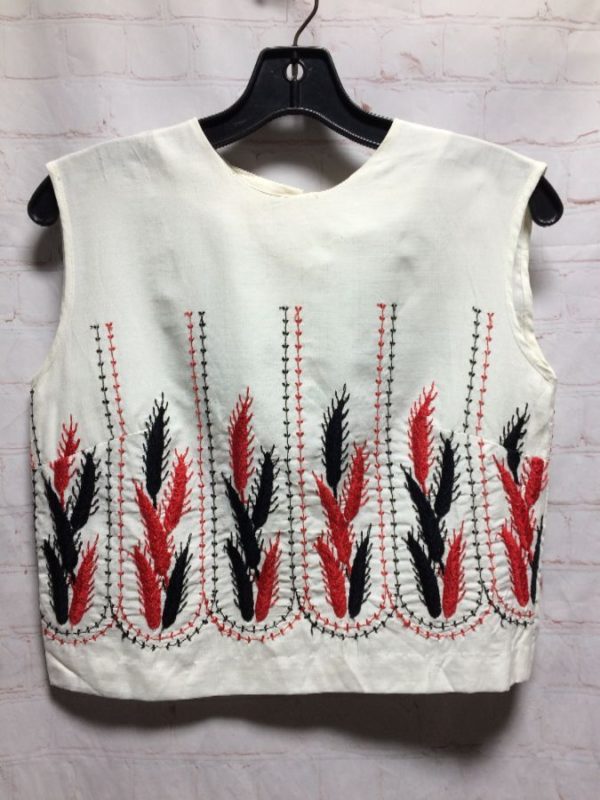 CROPPED SLEEVELESS COTTON BLOUSE W/ FULL FRONT EMBROIDERY