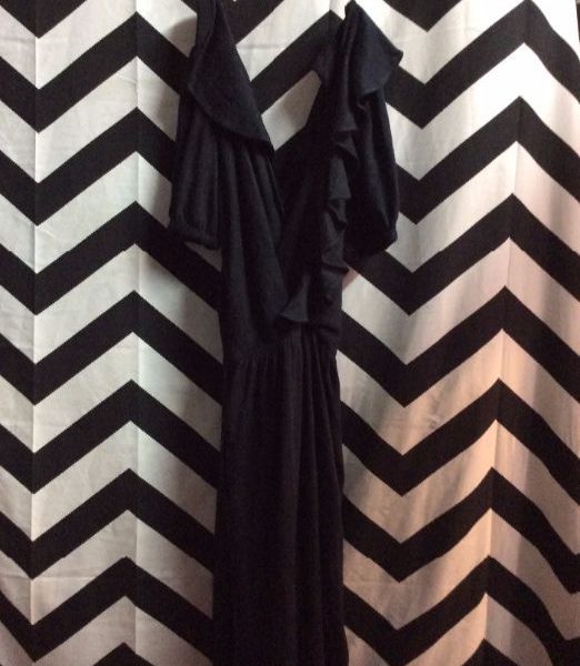 JUMPSUIT, CROPPED, PALAZZO STYLE LEGS, RUFFLES, BLACK