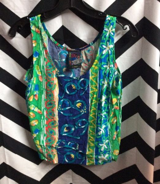 Tank top, cropped, sunglasses print fabric, blue/green