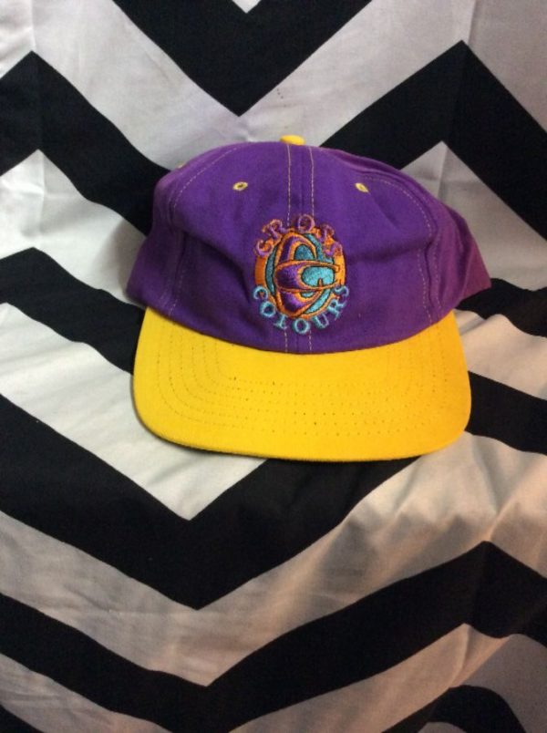 1990’s Cross Colors hat, color block design, embroidered logo, dead-stock, purple/yellow/teal/orange, size adjustable