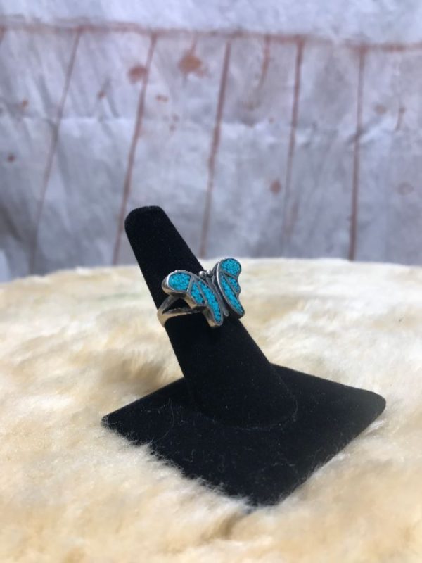 CRUSHED TURQUOISE RING W/ BUTTERFLY DESIGN STERLING SILVER 925 MOUNTING