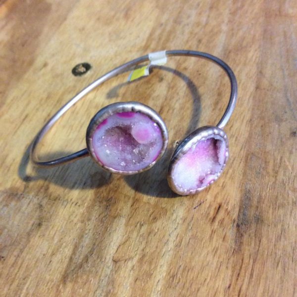 Bracelet, 2 crystals mounted in silver, silver/purple, size adjustable