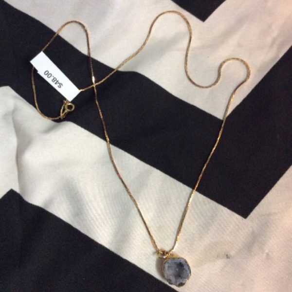 NECKLACE – CIRCLE SHAPED – DRUZY CRYSTAL – GOLD LOOKING SETTING – BRASS SNAKE CHAIN