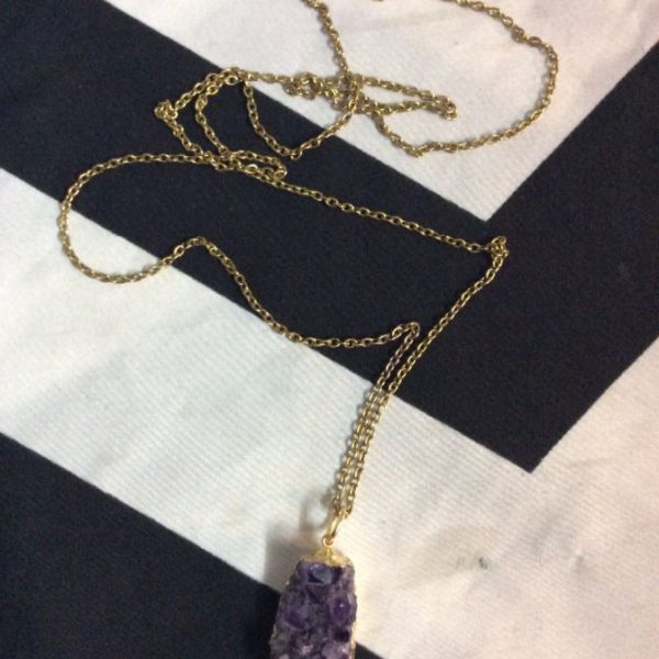 NECKLACE – AMETHYST CRYSTAL – GOLD LOOKING SETTING – BRASS LINK CHAIN