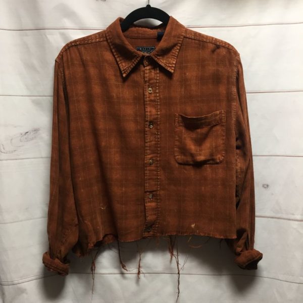 DISTRESSED CUSTOM DYED & CROPPED LONG SLEEVE BUTTON UP FLANNEL SHIRT – AS IS