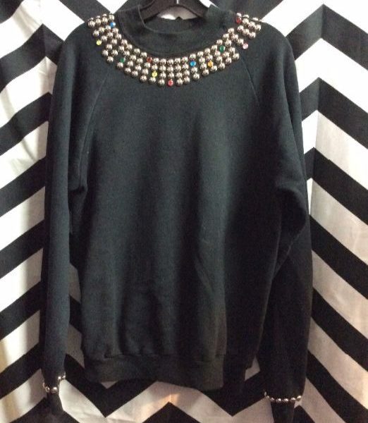 SWEATSHIRT – PULLOVER – CUSTOM BEAD/STUDDED NECKLINE & CUFFS