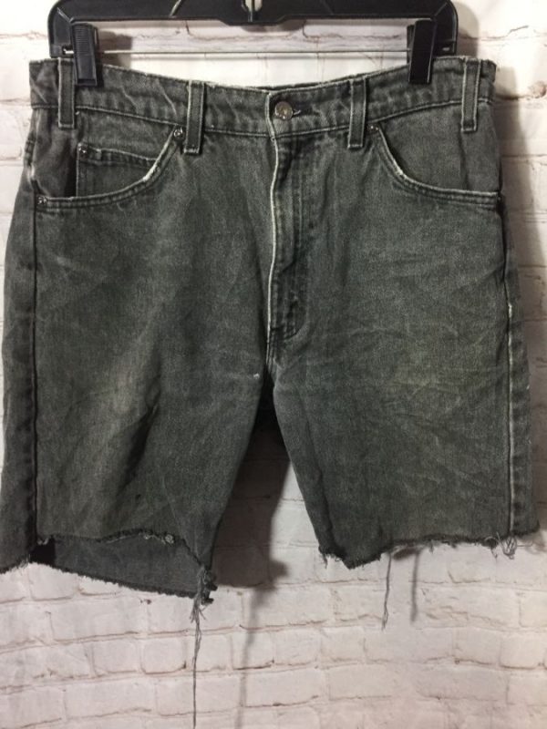 Levis denim shorts, cut-off, 505, zip-up, orange tab, faded, gray, 34W