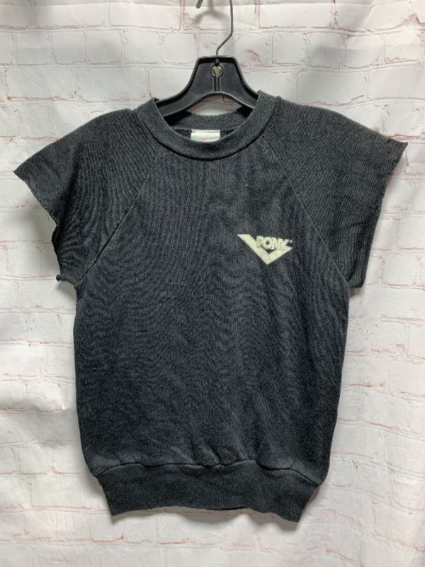 Pony sweatshirt, cut-out sleeves, pullover, crew-neck, screen printed left chest retro Pony logo, faded, black/white, size S
