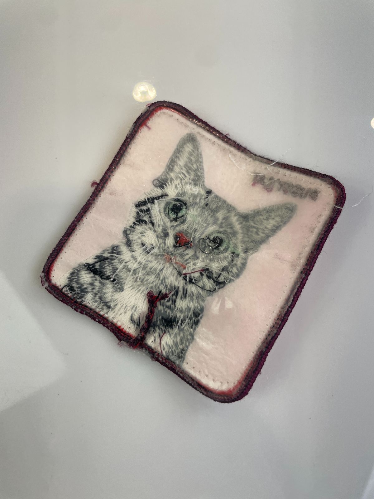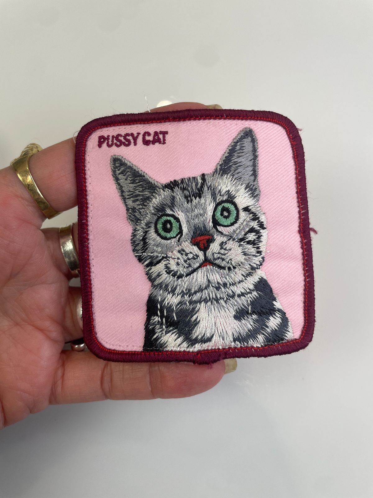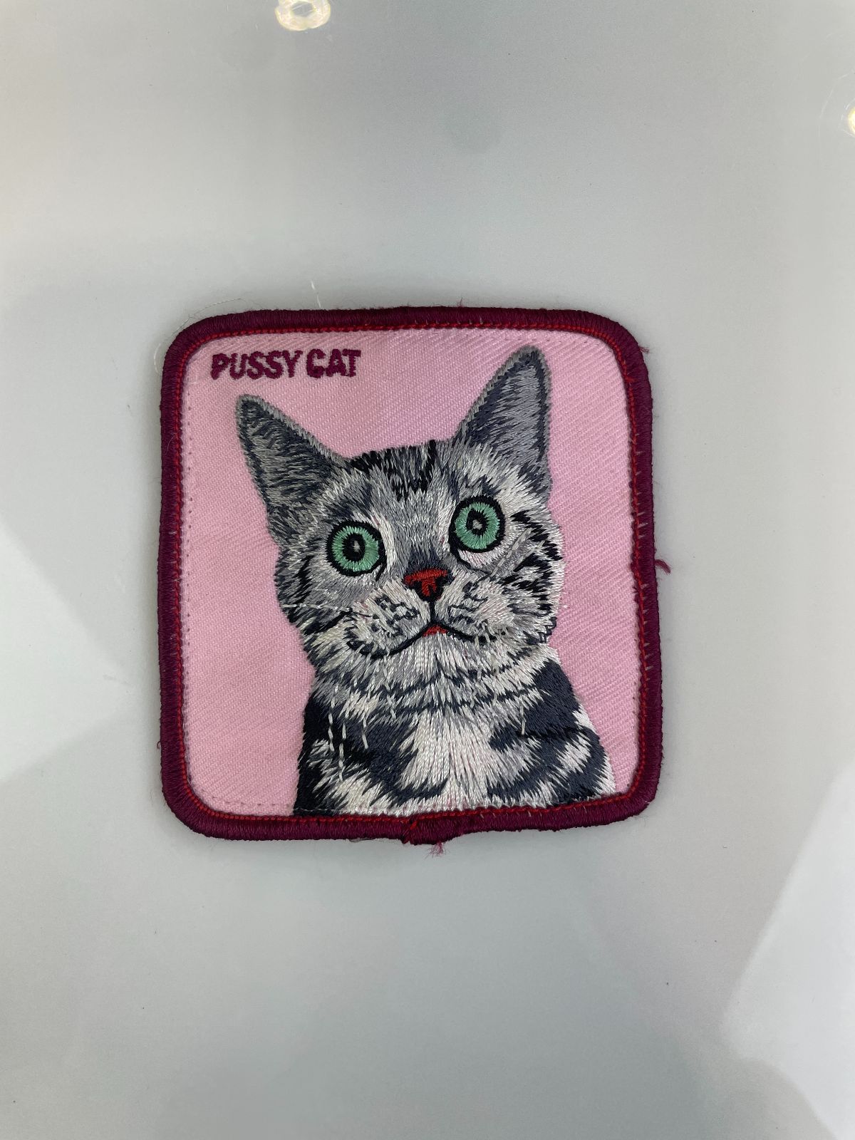 CUTE! SQUARE PUSSY CAT ILLUSTRATION EMBROIDERED PATCH