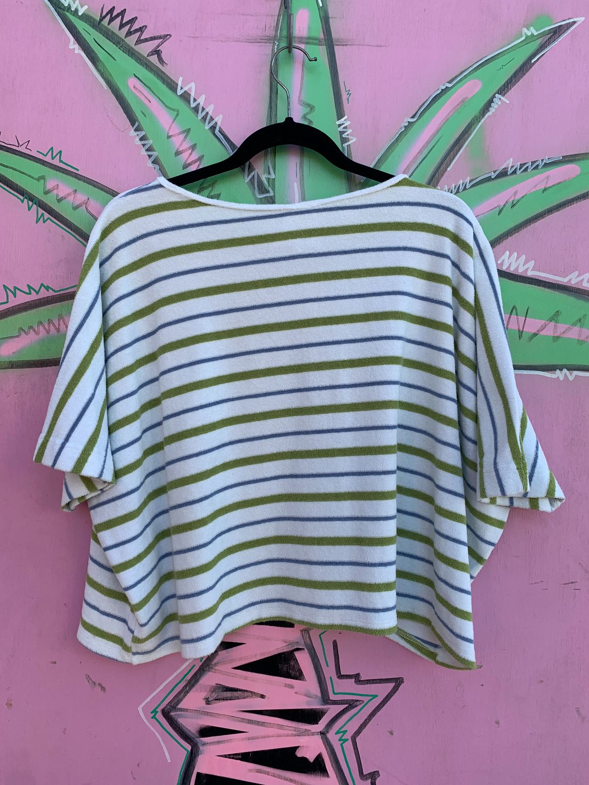 CUTE! STRIPED SUPER WIDE & BOXY CROPPED TERRY CLOTH TOP