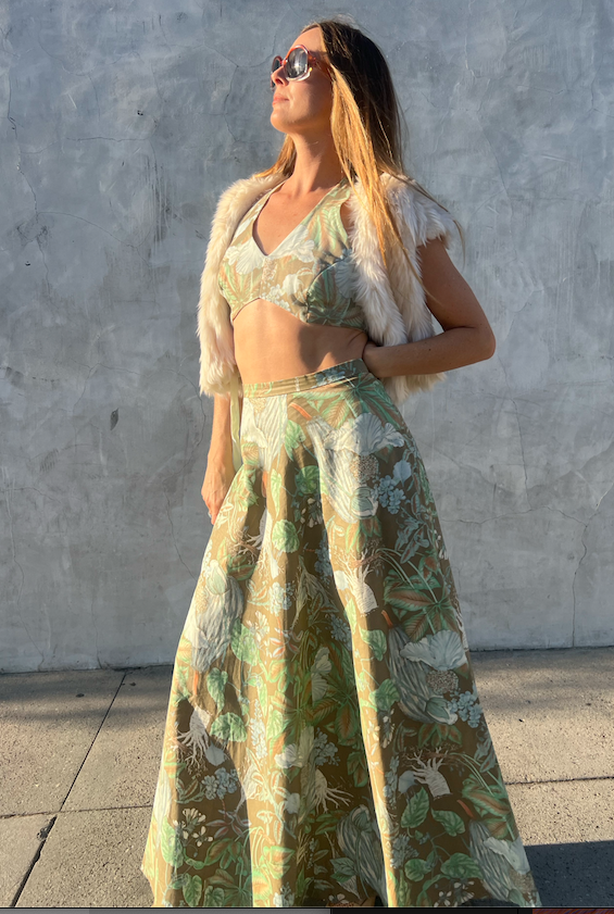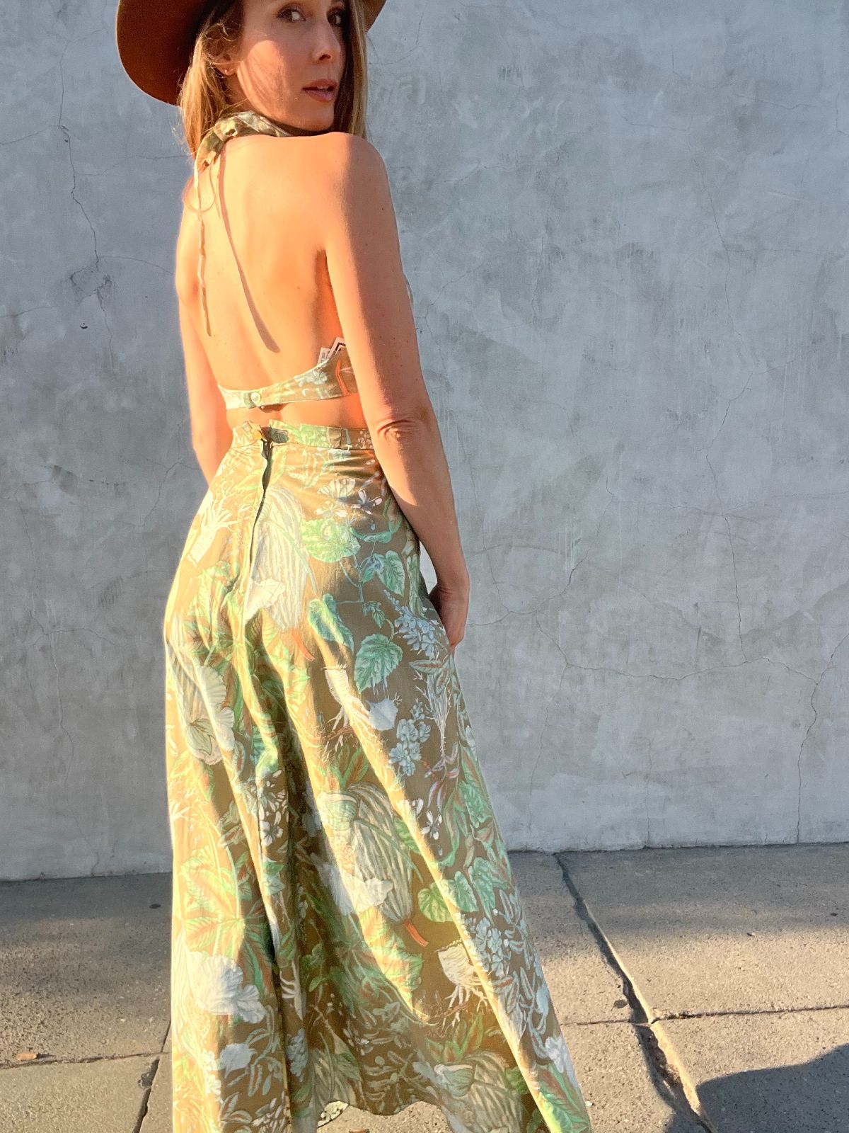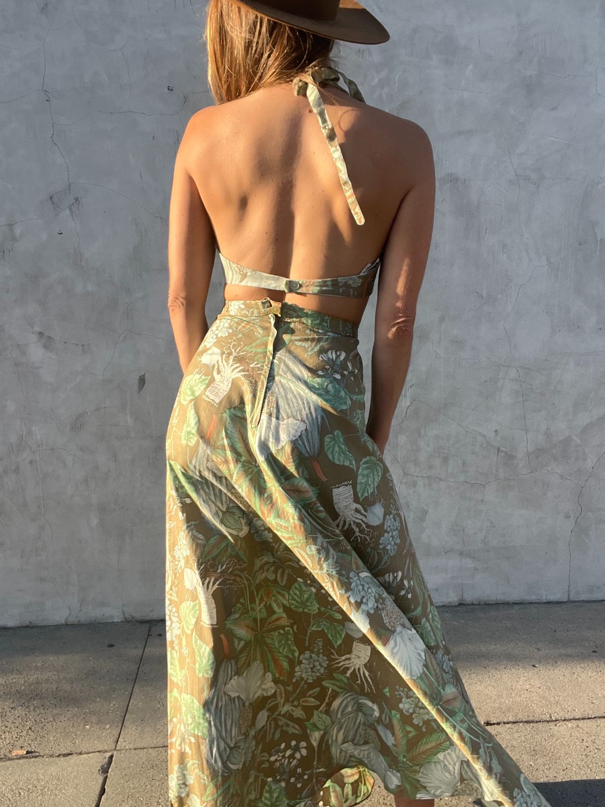 CUTE! SUBTLE TROPICAL PRINT 2-PIECE SKIRT & HALTER TOP SET