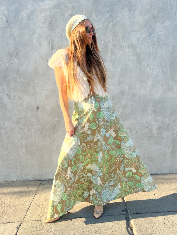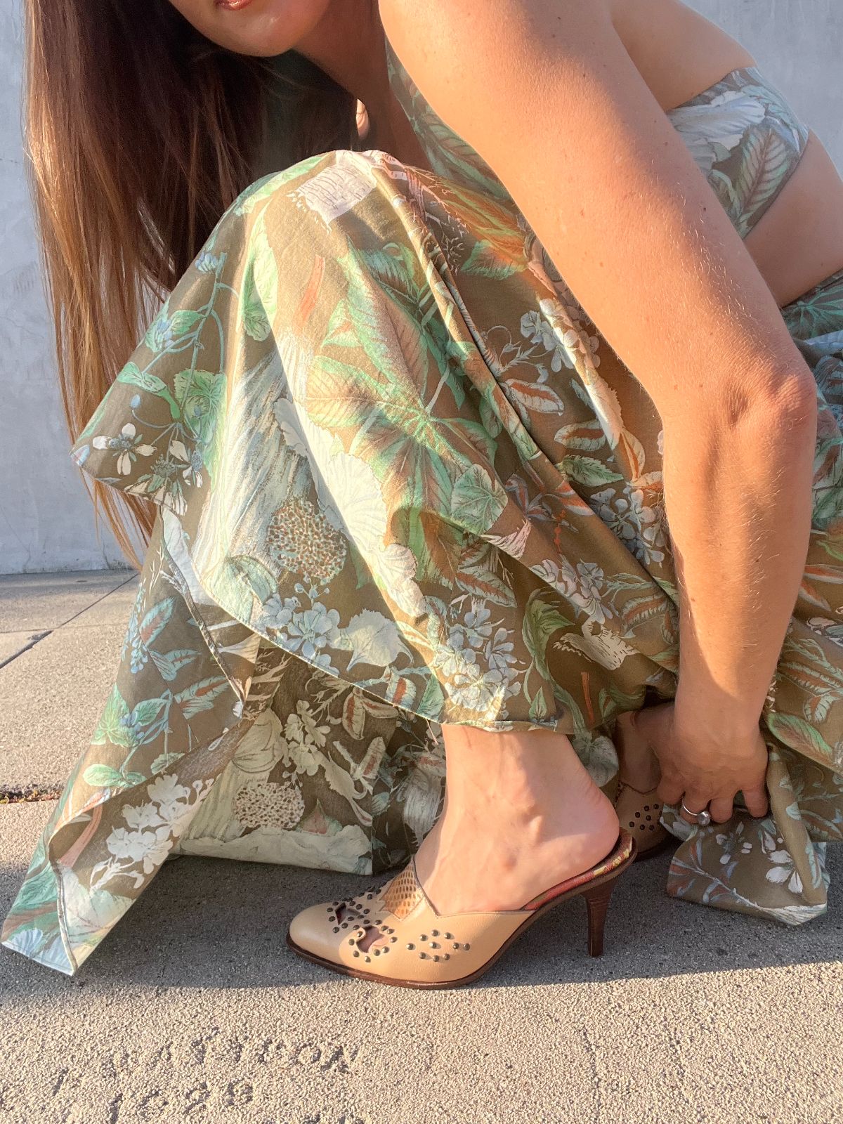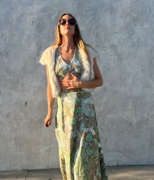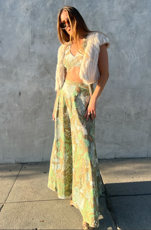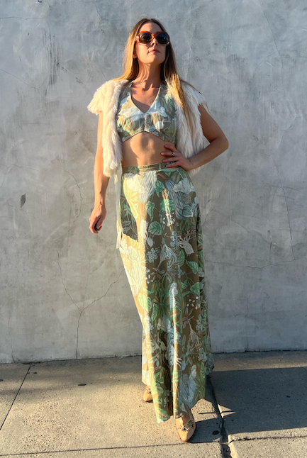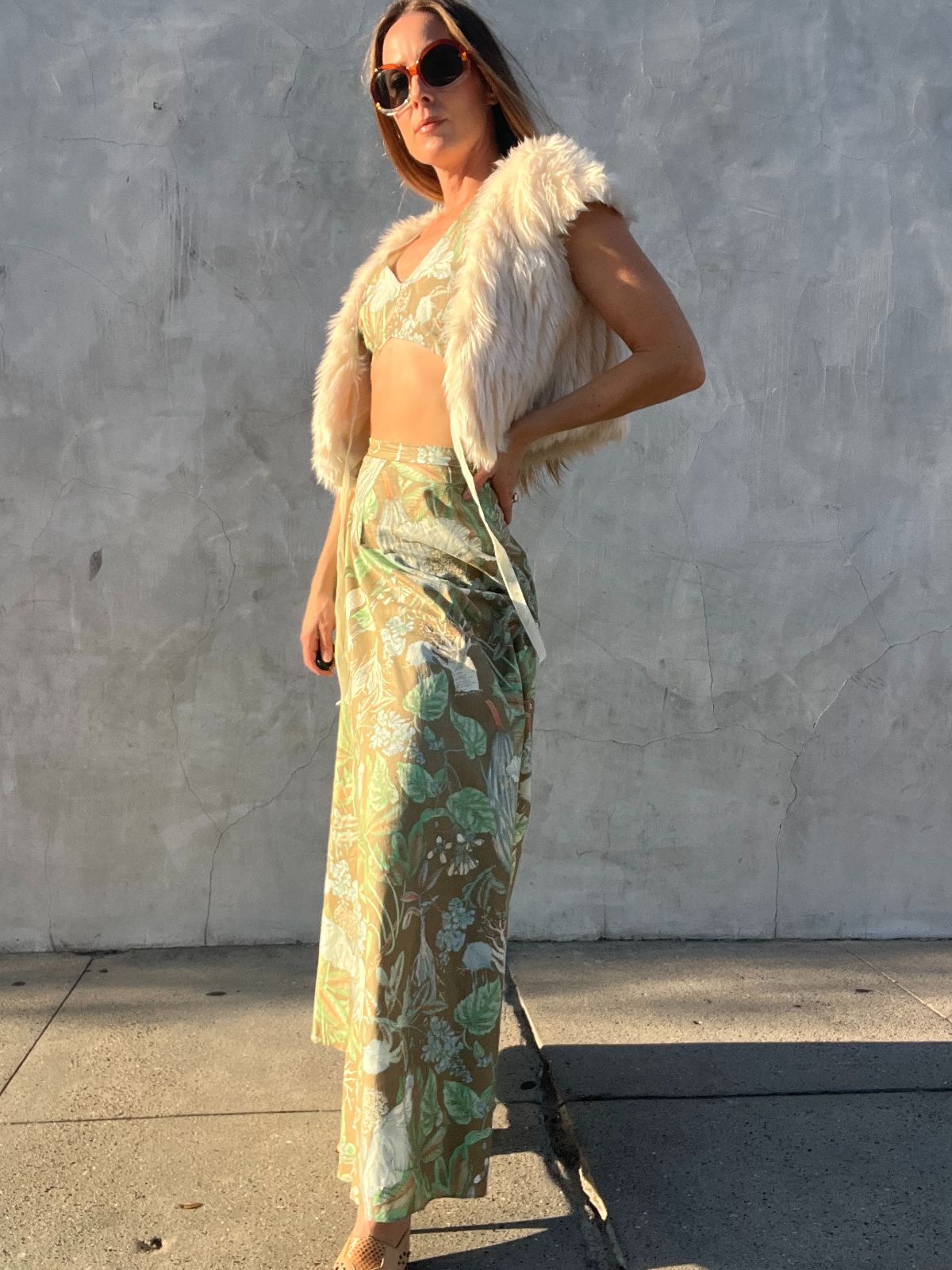 CUTE! SUBTLE TROPICAL PRINT 2-PIECE SKIRT & HALTER TOP SET