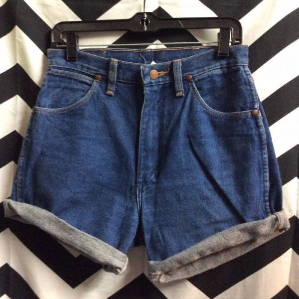 WRANGLER DENIM JEAN SHORTS – CUTOFF – CUFFED BOTTOMS – DARK WASH