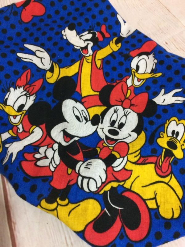 Bandana, cotton, square shape, Disney cartoon graphic design print over polka dot background, Donald/Daisy/Mickey/Minnie/Goofy/Pluto, white/red/black/blue/yellow