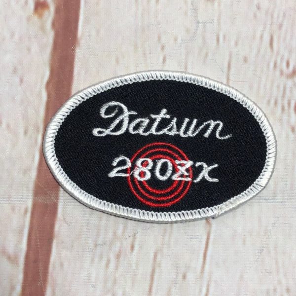 Tags: 280ZX, automobile, automotive, bullseye, Car, Datsun, embroidered patch, oval shaped