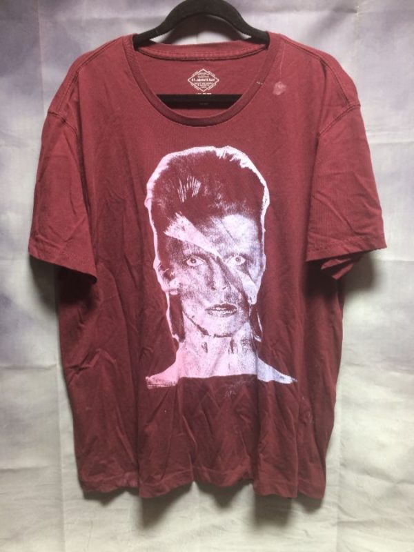 Rick the Dick T-shirt, David Bowie Starman graphic, screen printed full front design, maroon/white, size L