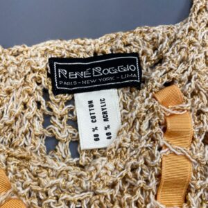 1990S SLINKY LOOSE METALLIC CROCHET SLEEVELESS TOP WOVEN RIBBON DETAIL