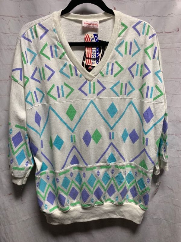DEADSTOCK 1980S PULLOVER PRINTED V-NECK SWEATSHIRT NWT