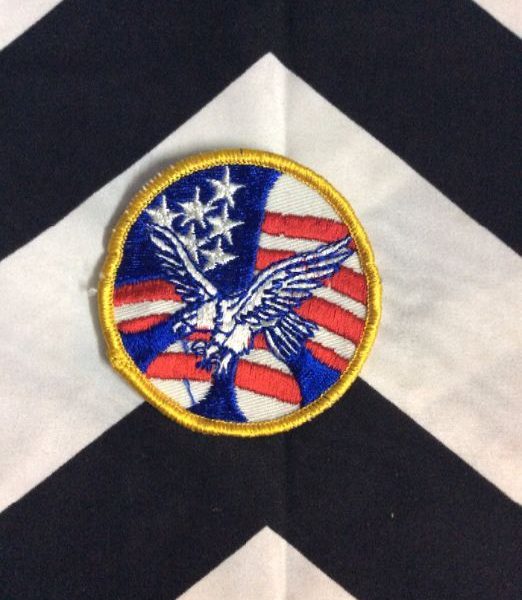Embroidered patch, American flag with eagle and peace sign, round shape, deadstock, old stock, red/white/blue/yellow