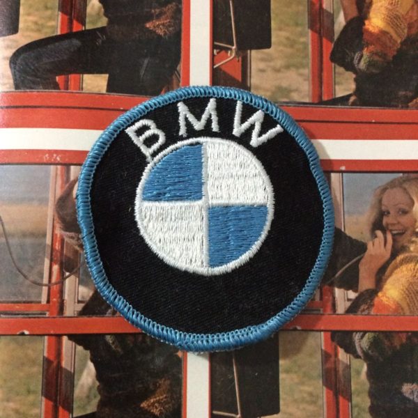 Embroidered patch, BMW emblem, round, deadstock, old stock, black/blue/white