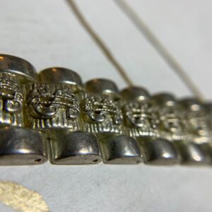 AMAZING OVERSIZED SILVER & BRASS ENGRAVED GEOMETRIC SHAPE PENDANT BOLO TIE & BLACK LEATHER WOVEN CORD