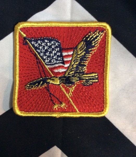 Embroidered patch, Eagle & American flag, square shape, deadstock, old stock, red/white/blue/brown/gold