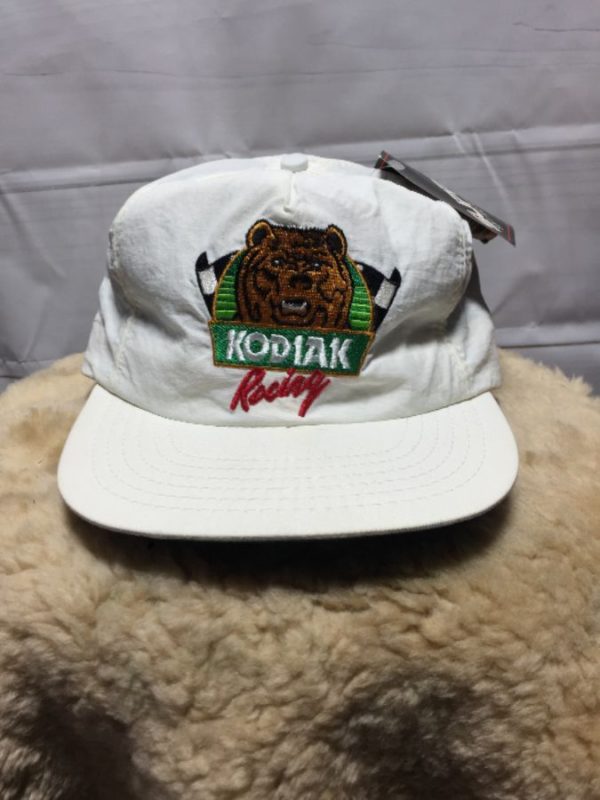 SUPPLEX BASEBALL CAP, NYLON, KODIAK RACING, EMBROIDERED FRONT DESIGN, DEAD-STOCK, WHITE/RED/GREEN/BROWN/BLACK, SIZE ADJUSTABLE