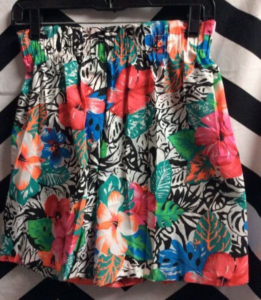 *AS-IS* 1980S TROPICAL HIGH-WAISTED SHORTS ELASTIC WAIST HIBISCUS FLOWER PRINT LIGHTWEIGHT FABRIC