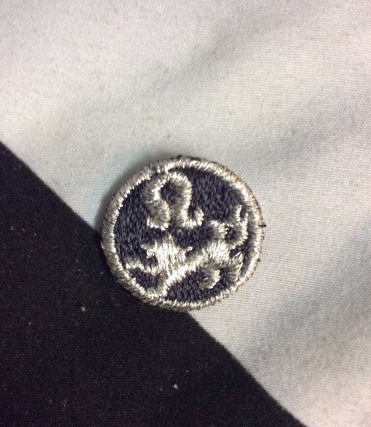 Embroidered patch, Leo horoscope sign, round shape, deadstock, old stock, silver/charcoal gray, size mini