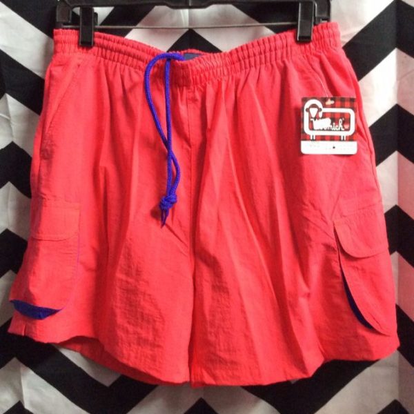 Swim trunks, elastic waist, solid color, neon color, deadstock, NWT, neon red/neon purple, size M