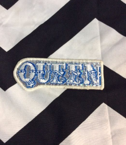 Embroidered patch, Queen, metallic background, deadstock, old stock, silver/white/blue