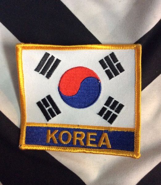 Embroidered patches, South Korean flag design with Korea lettering, deadstock, old stock, red/blue/black/yellow