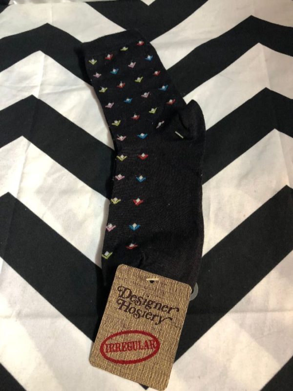 Designer Hosiery socks, multi-color design, diamond print, dead-stock, black/multi, size 9-11