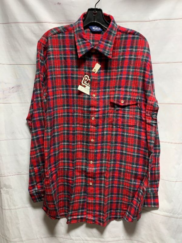 WOOLRICH FLANNEL SHIRT, COTTON, LONG SLEEVES, BUTTON-UP, SOFT, PLAID DESIGN, DEAD-STOCK, RED/GREEN/BLUE/WHITE, SIZE L