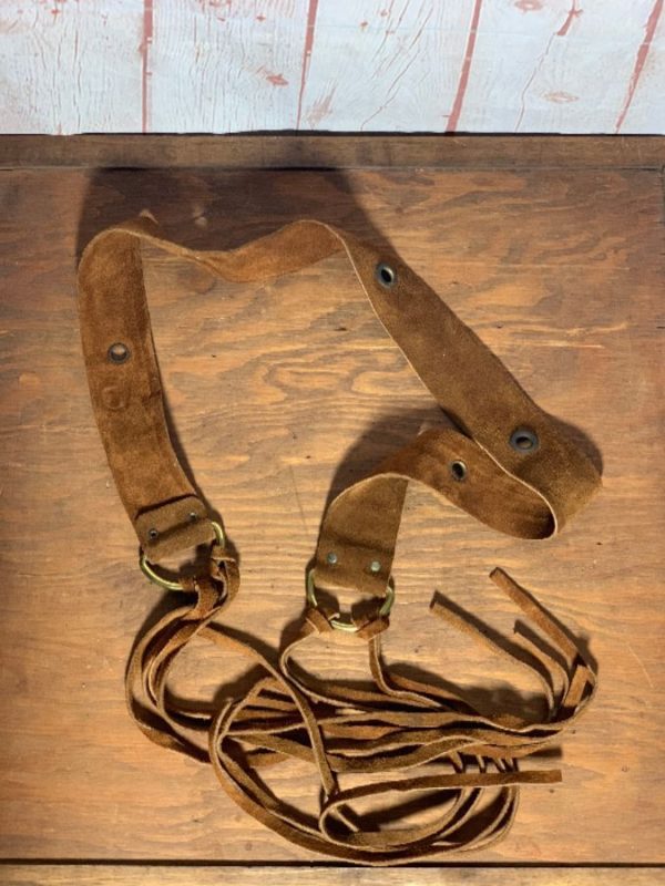 SUEDE LEATHER TIE WAIST BELT W/ LONG LEATHER STRIPS & EYELET EMBELLISHMENT