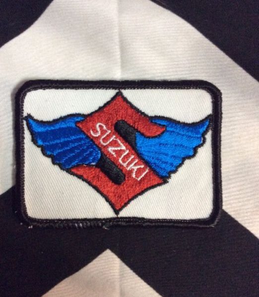 Embroidered patch, Suzuki emblem with wings, square shape, deadstock, old stock, red/white/blue/black