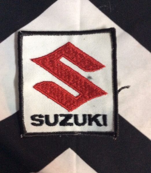 Embroidered patch, Suzuki logo, square shape, deadstock, old stock, red/white/black