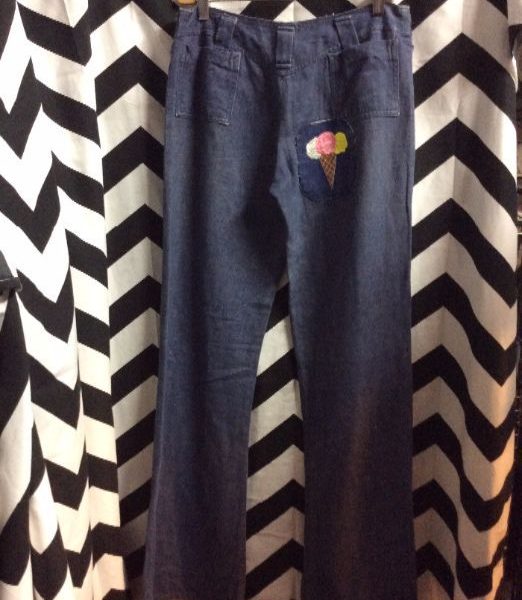 DENIM BELLBOTTOMS WITH ICE CREAM PATCH AS IS