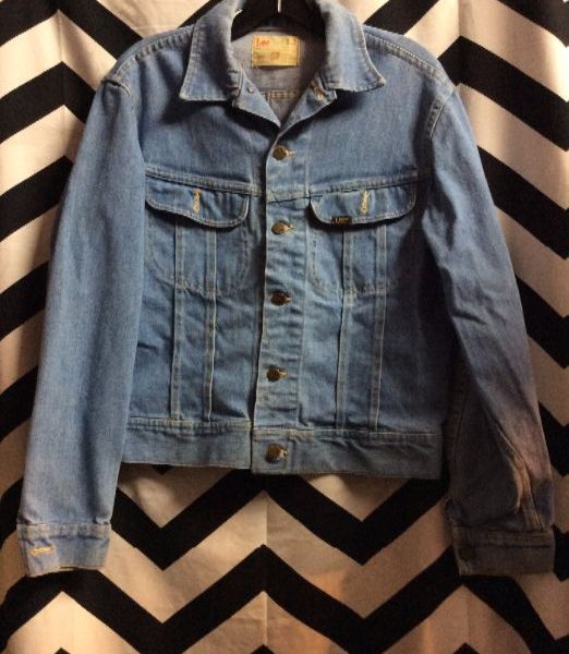 Retro Lee denim jacket, button-up, acid wash, light blue, size M
