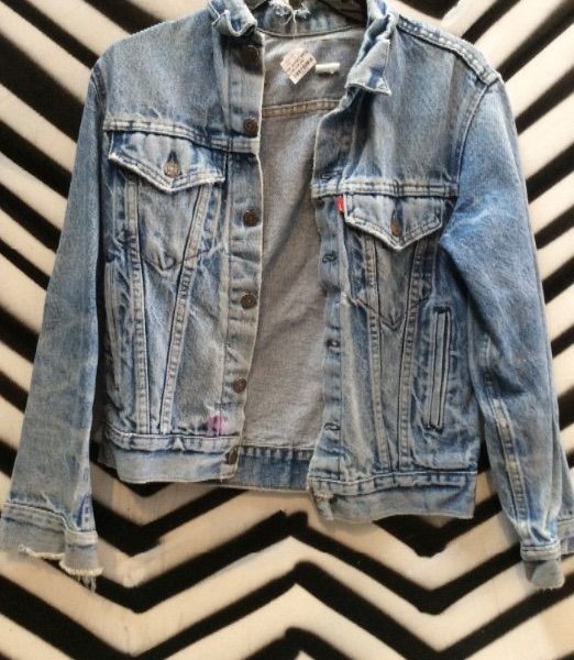 Levis denim jacket, blue, size S small fit has frayed collar
