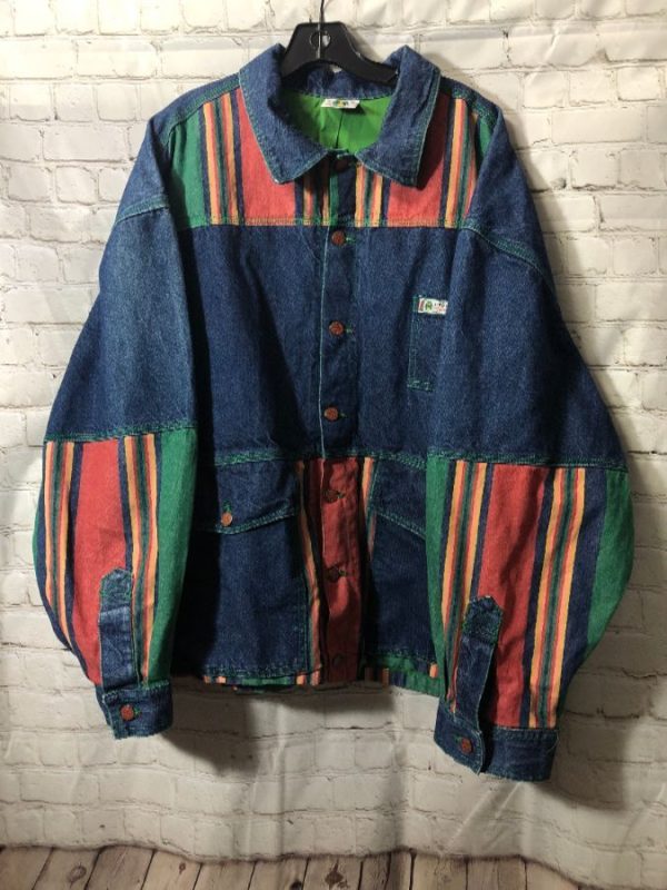 CROSS COLOURS DENIM JACKET W/ VERTICAL STRIPES