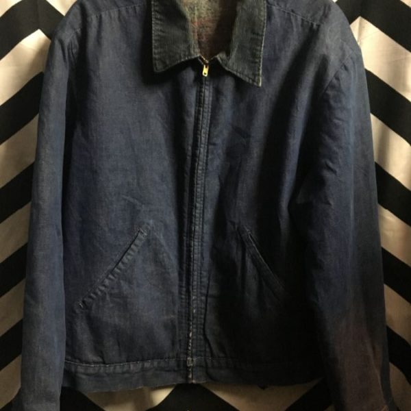 DENIM JACKET ZIP-UP W/ CORDUROY COLLAR & WOOL LINING